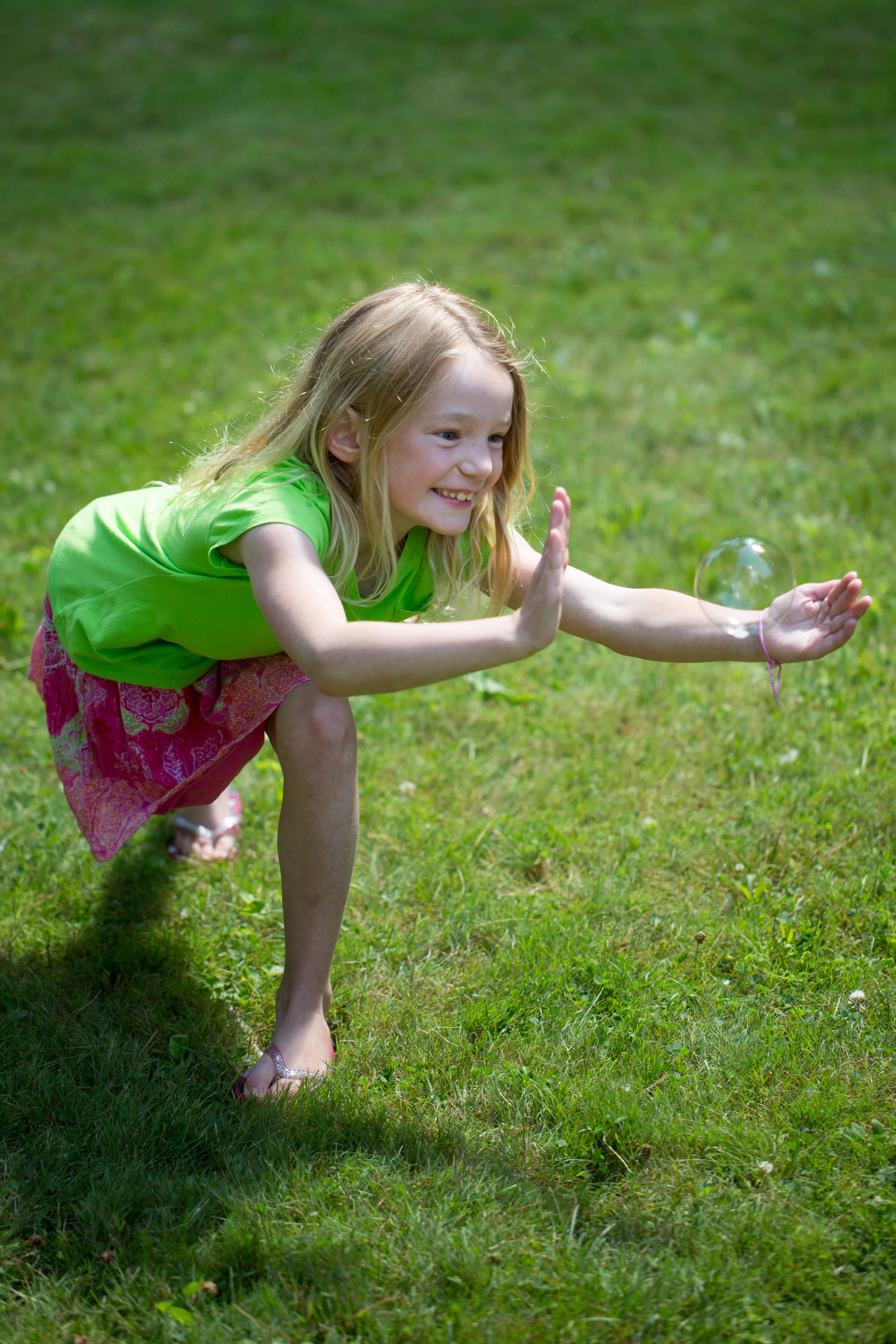 One day during our week was a little too cold to get into the water. Instead we pulled out a bunch of bubbles and had fun in the yard. My oldest Evie was trying to catch some without popping them.